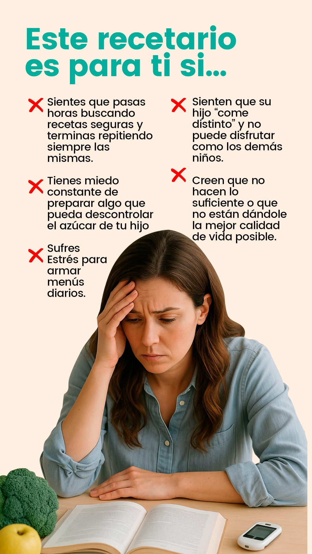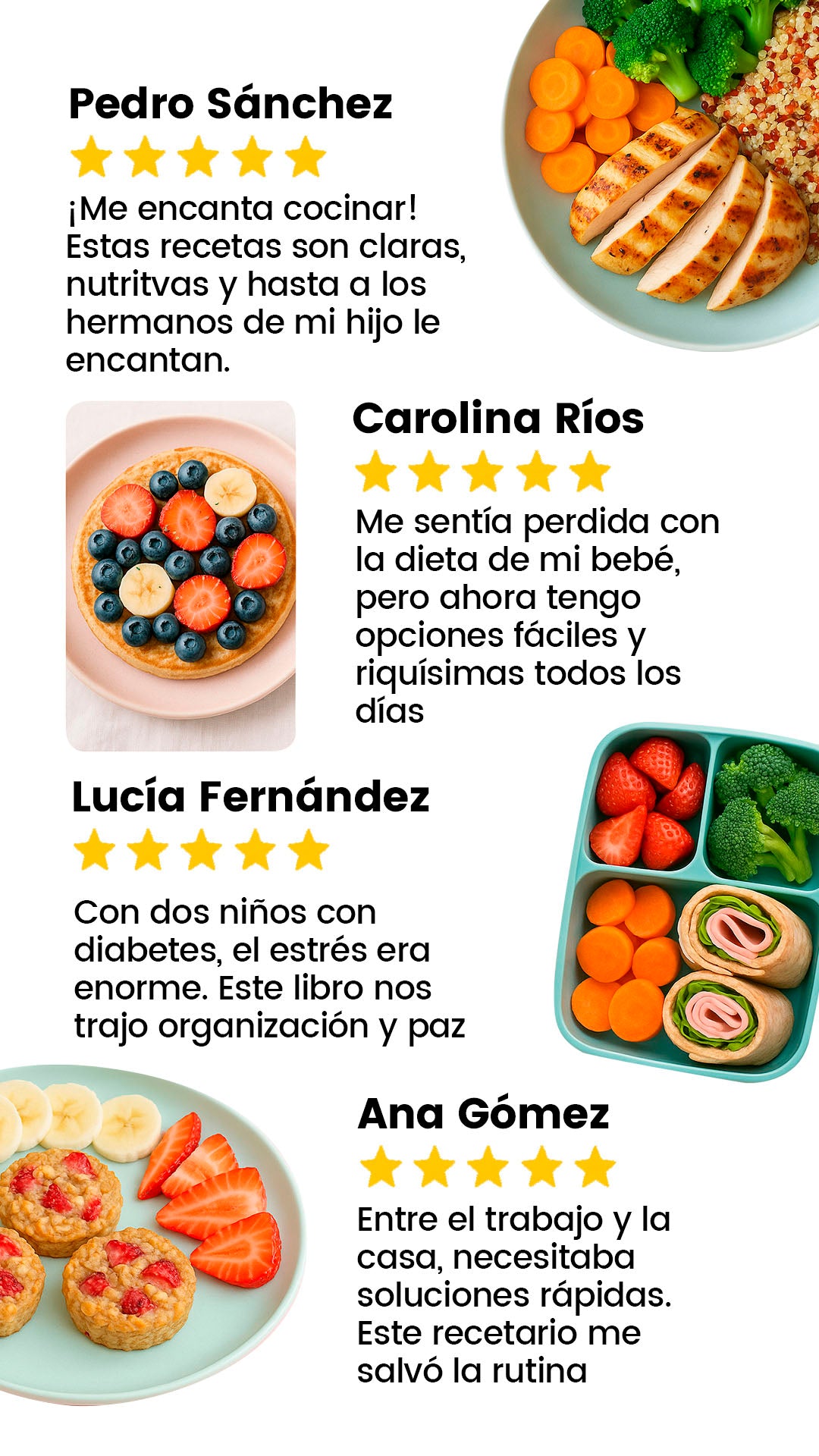 Internet está lleno de información dispersa y poco confiable. Este producto reúne 500 recetas comprobadas, organizadas por tipo de comida y necesidad. Además, los 5 bonos exclusivos te ahorran tiempo, estrés y dinero, brindándote una solución completa para planificar las comidas de tu hijo en un solo lugar y con respaldo profesional.
